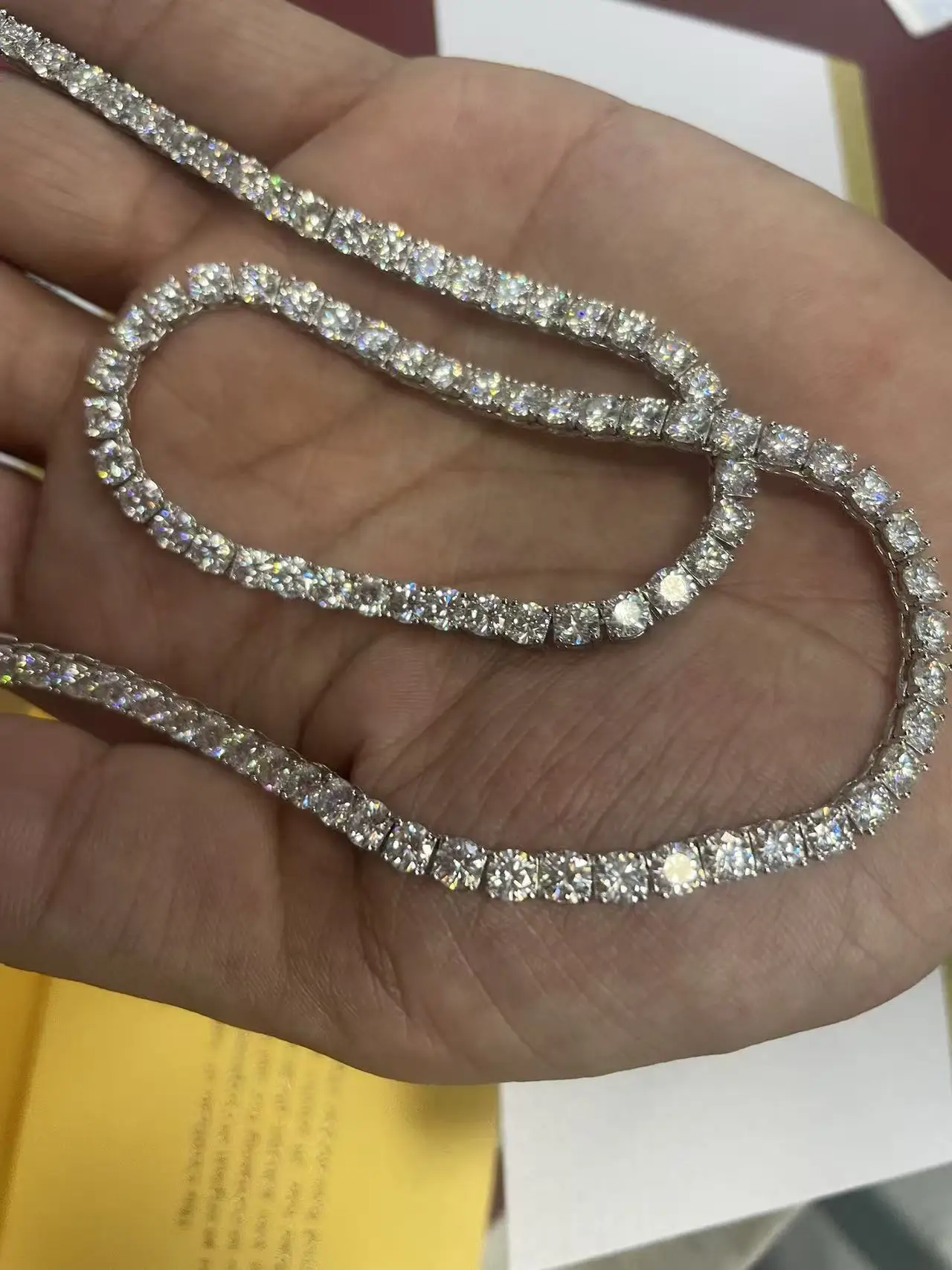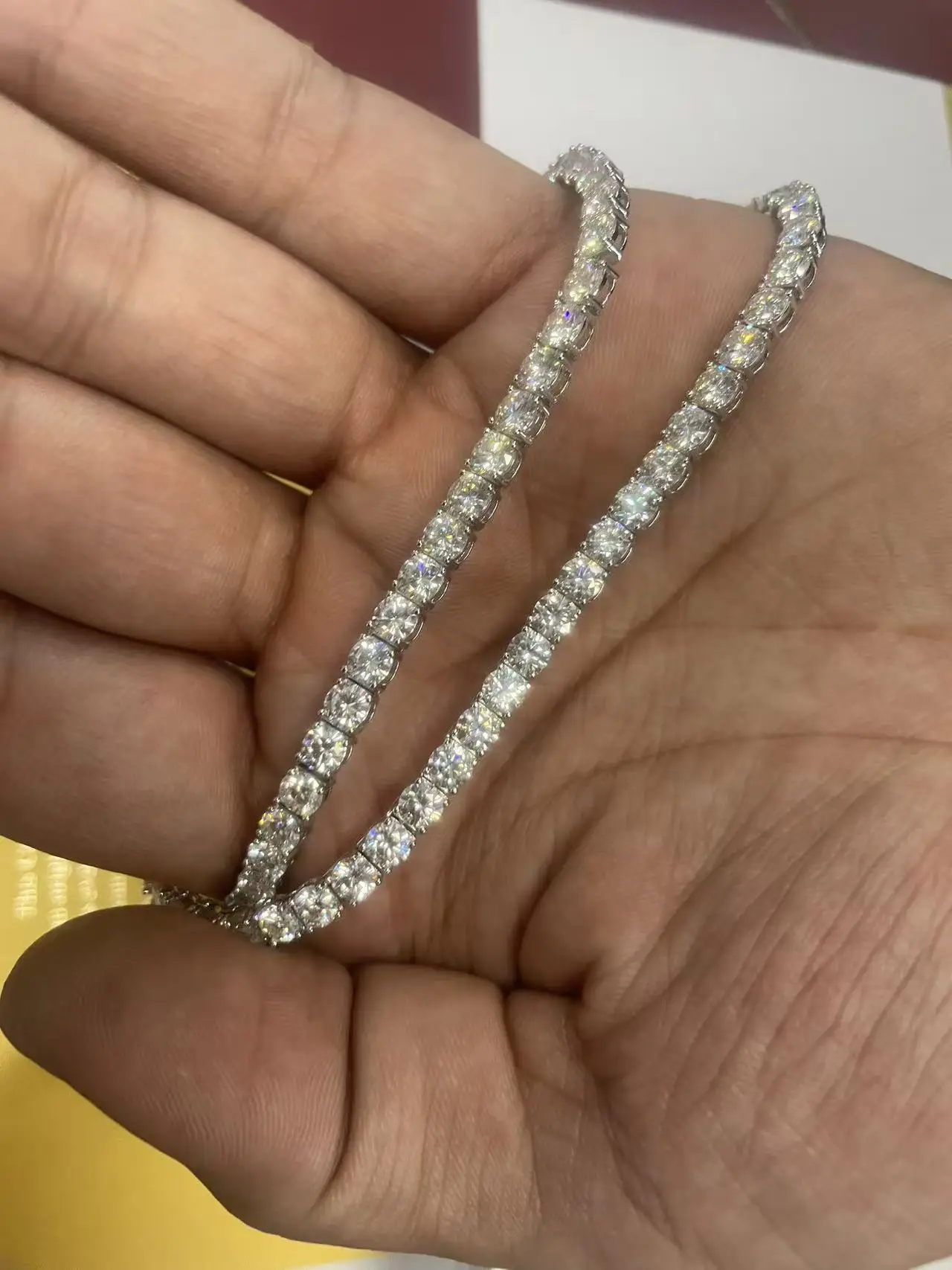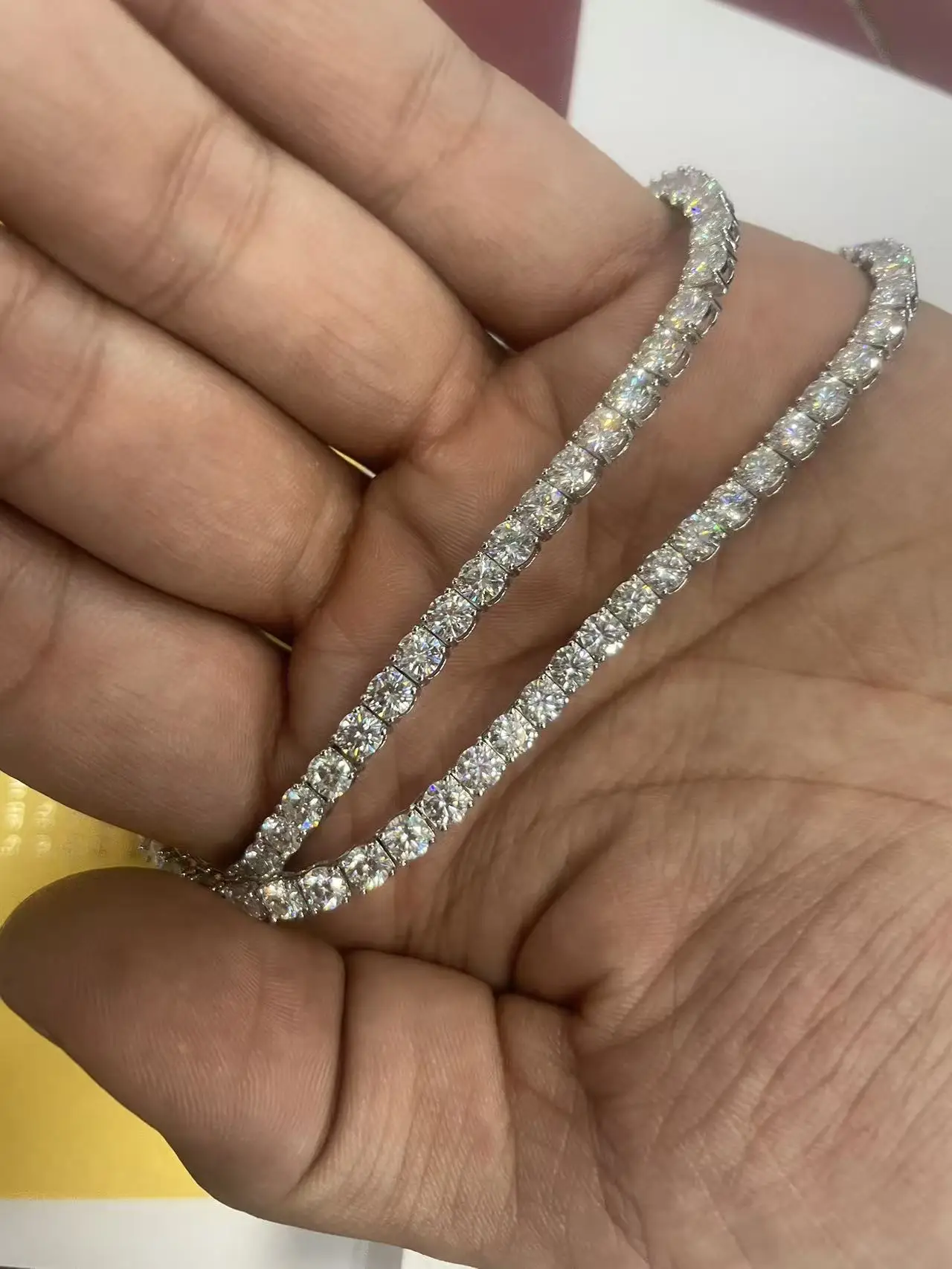 Complete your jewellery collection with this exquisite moissanite tennis bracelet, a sophisticated alternative to traditional diamond pieces. Featuring brilliant moissanite stones set in a continuous line design, this bracelet delivers exceptional sparkle and fire. Moissanite offers outstanding value without compromising on brilliance or longevity, making this tennis bracelet an investment piece that will remain radiant for years to come.
